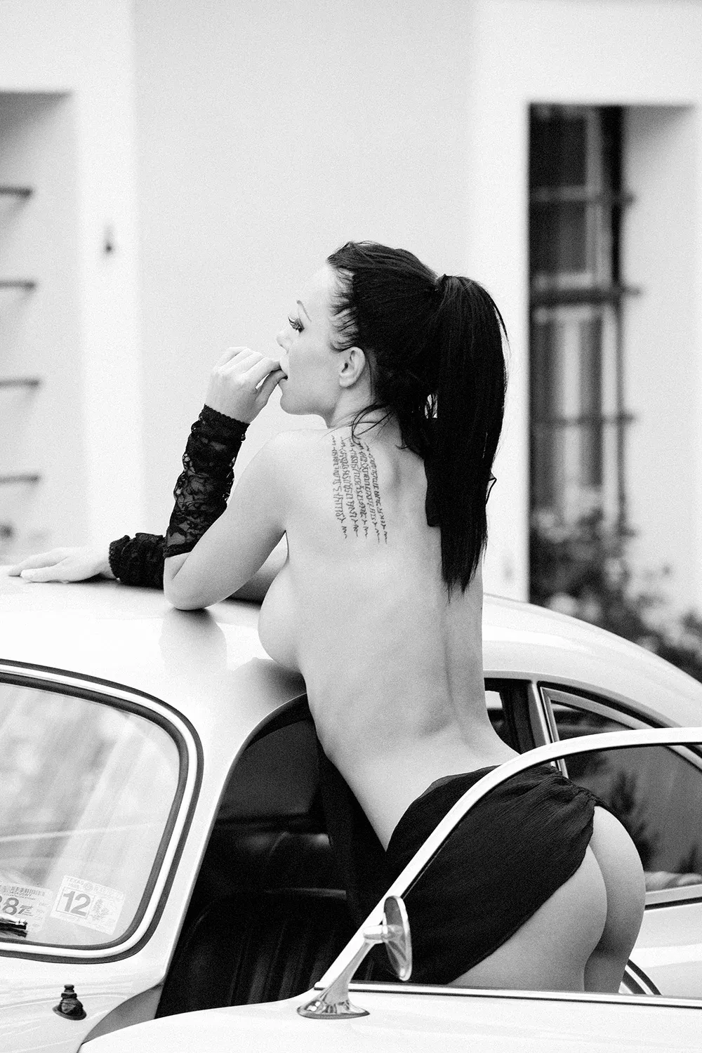 Vergiss, was du über Bonnie & Clyde weißt – das hier ist eine neue Version. “Bonnie’s 356” zeigt eine Frau, die genau weiß, was sie tut. Der Porsche ist ein Klassiker, aber die wahre Legende lehnt an der Karosserie. Der Lack glänzt, die Haltung ist pure Dominanz. Erotische Aktfotografie, die dich wie ein verdammter Sportwagen überholt.