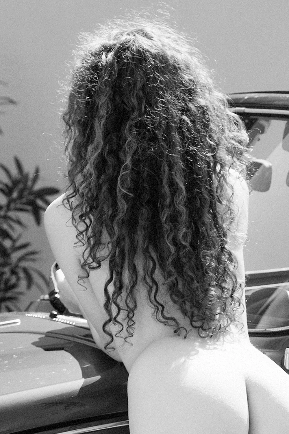 Sie braucht keinen Grund, keinen Anlass. Ihre Füße auf dem Kopfsteinpflaster, ihr Körper eine einzige Provokation gegen das Gewöhnliche. Die Locken fallen ihr über den Rücken, während sie sich mit einer Selbstverständlichkeit an das Auto lehnt, als sei es ihr Revier. Die Komposition? Perfekt. Erotik trifft auf Nostalgie, rohe Ästhetik auf zeitlose Anziehung. Das ist nicht nur erotische Aktfotografie – Wer hinsehen will, soll es tun. Wer es nicht aushält, soll wegsehen.