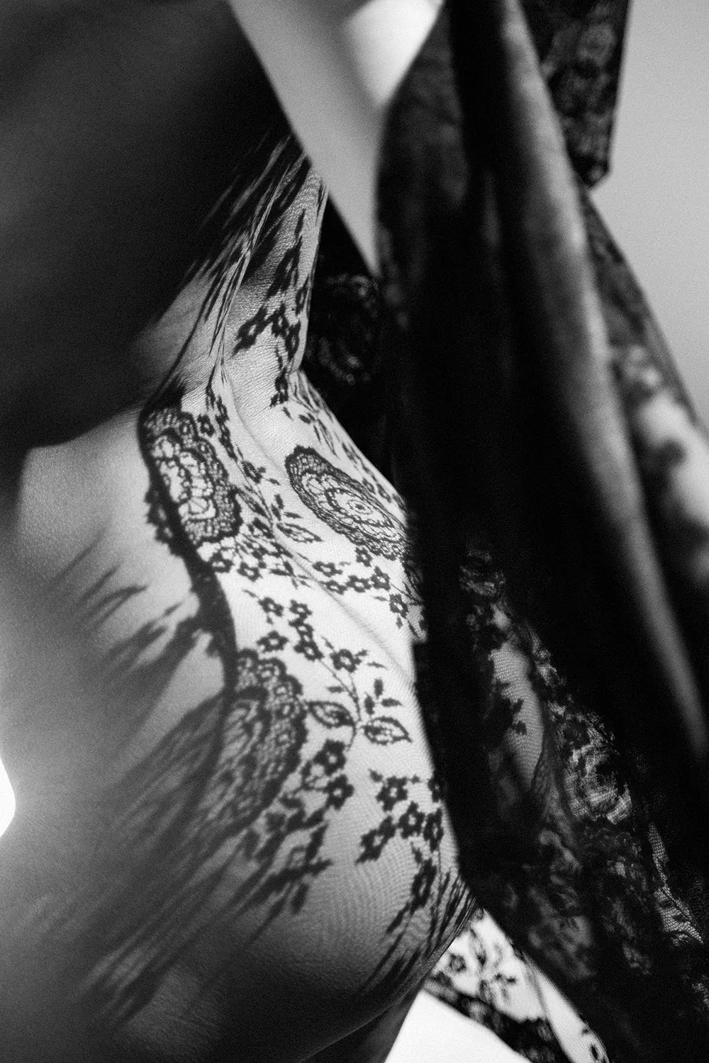 „Bloom, Damn It“ ist eine Zeitgenössische Aktfotografie, die das Spiel von Licht und Schatten in einem Moment purer Sinnlichkeit einfängt.
