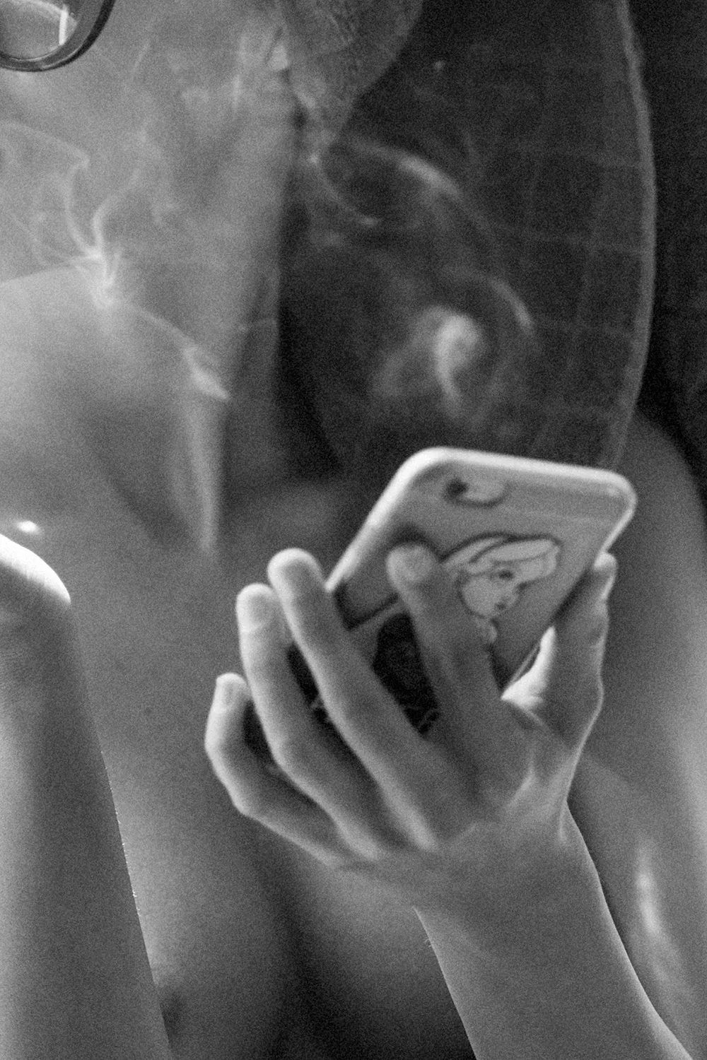 Sunlight, smoke and sensuality: Bone & Phone is erotic nude photography with casual coolness.