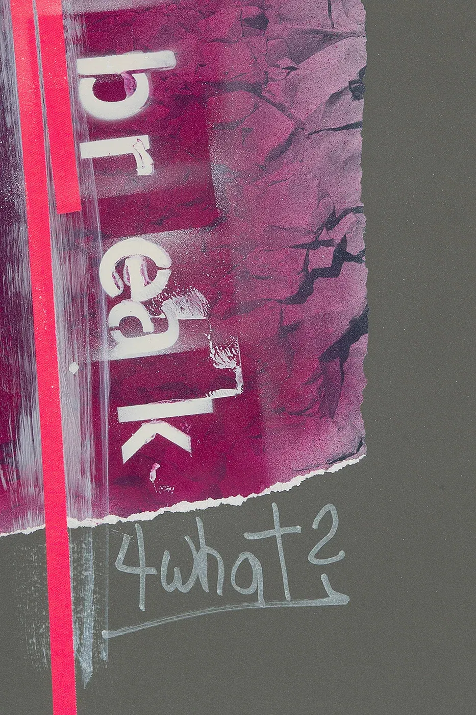 - Technique: touch-up pencil, spray paint, adhesive tape, original photograph, collage on cardboard