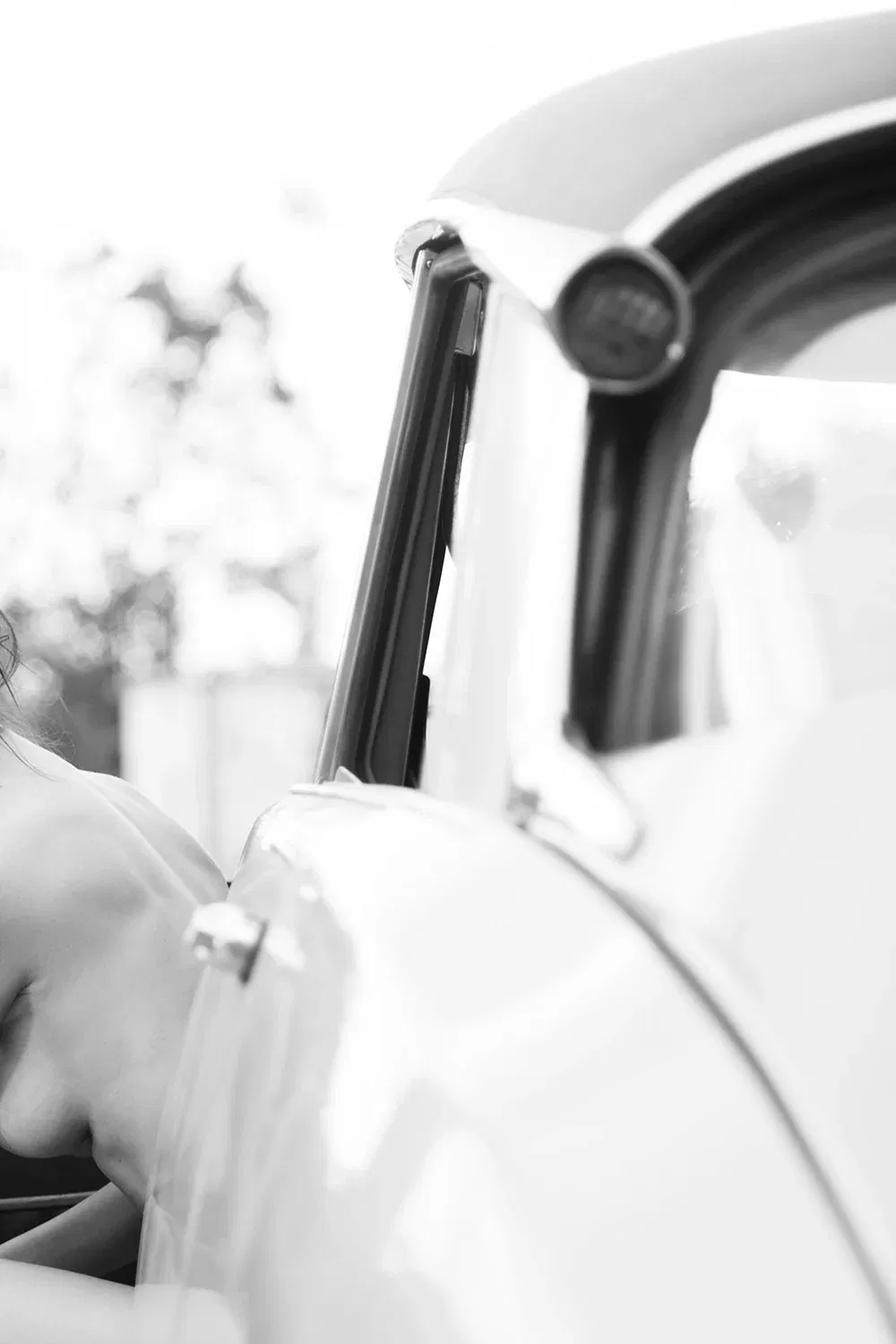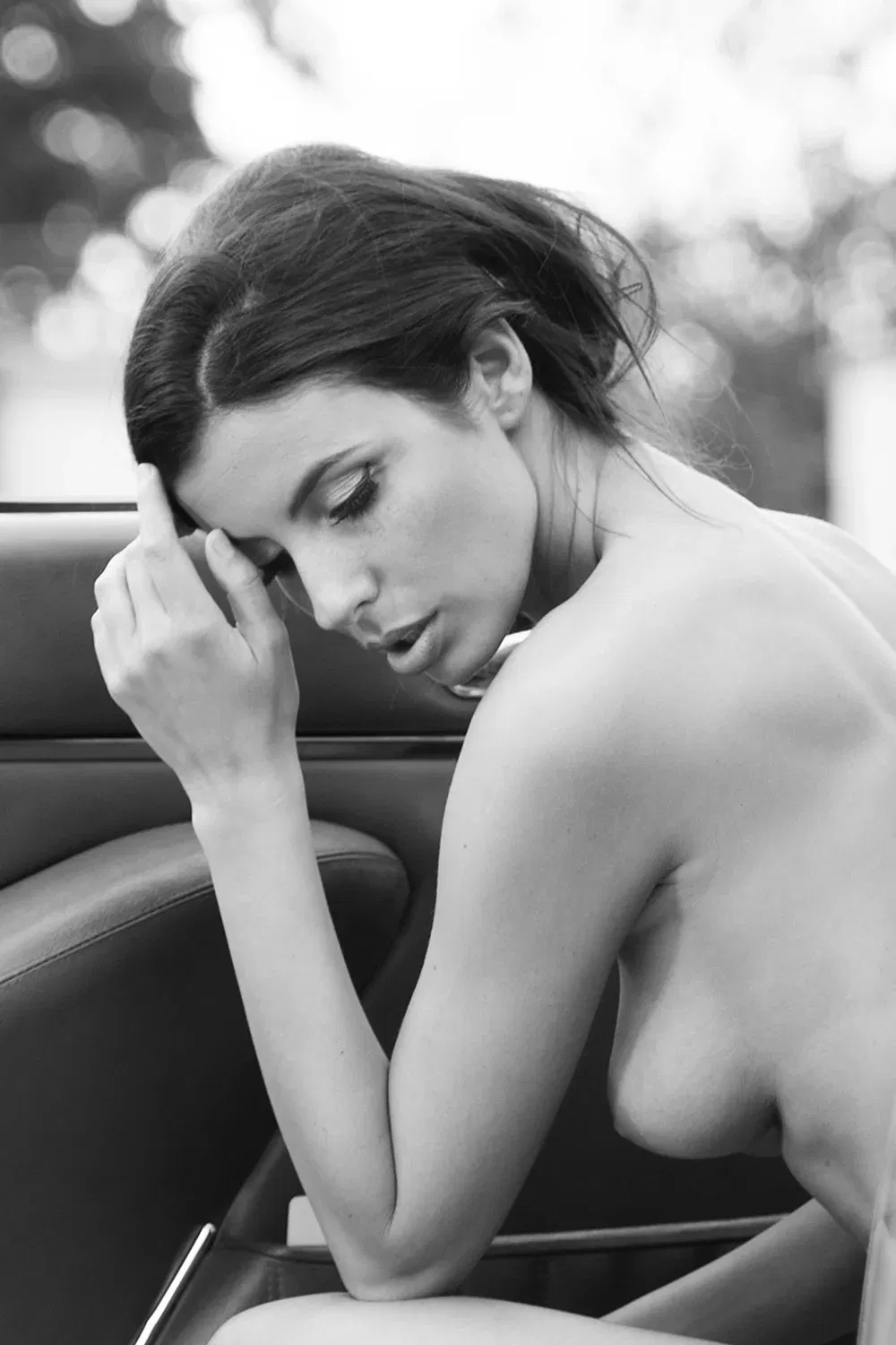 Black and white eroticism with a classic flair. A woman, a car, a moment that stays with you.