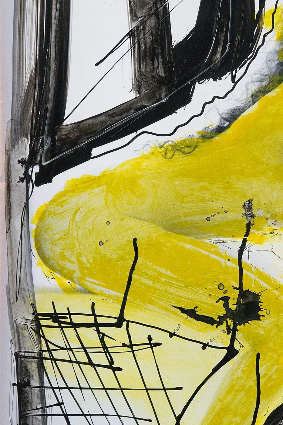 Yellow explosion behind bars – contemporary collage art