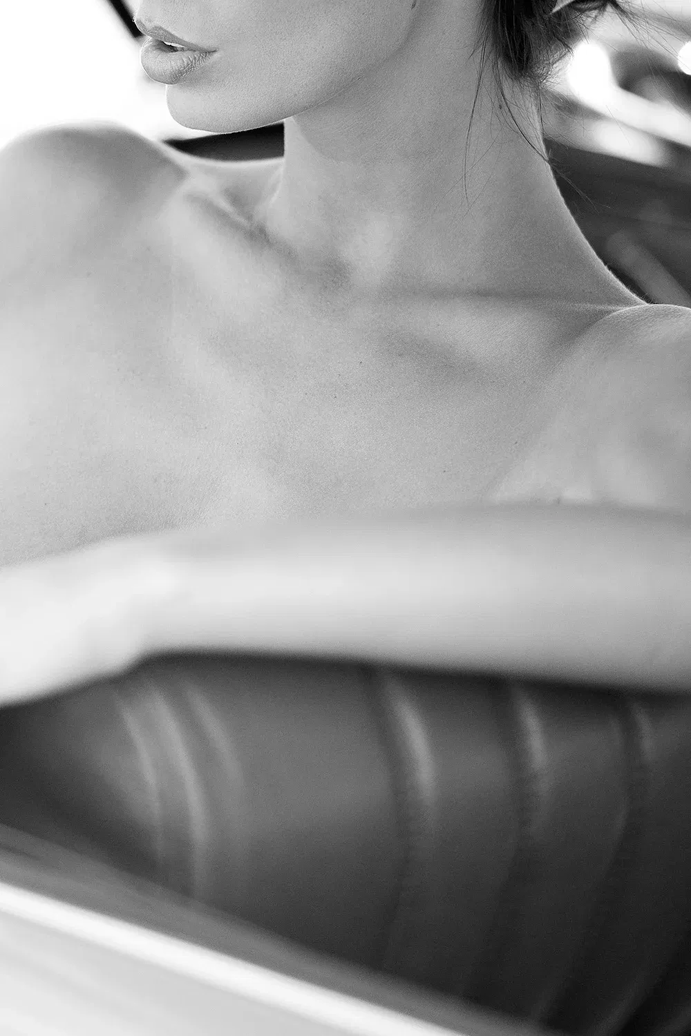She sits there as if she has only surrounded herself with the rich and corrupt for years. Maybe she’s even sick of it – maybe she’s waiting for the next scandal. Her body half-hidden, just enough skin to make your mind fly off the curve. The glasses hide her eyes, but you know full well she’s piercing you. No sweet smile, no invitation – just control. Erotic nude photography with style, with class and with that damn undertone that won’t let you go.