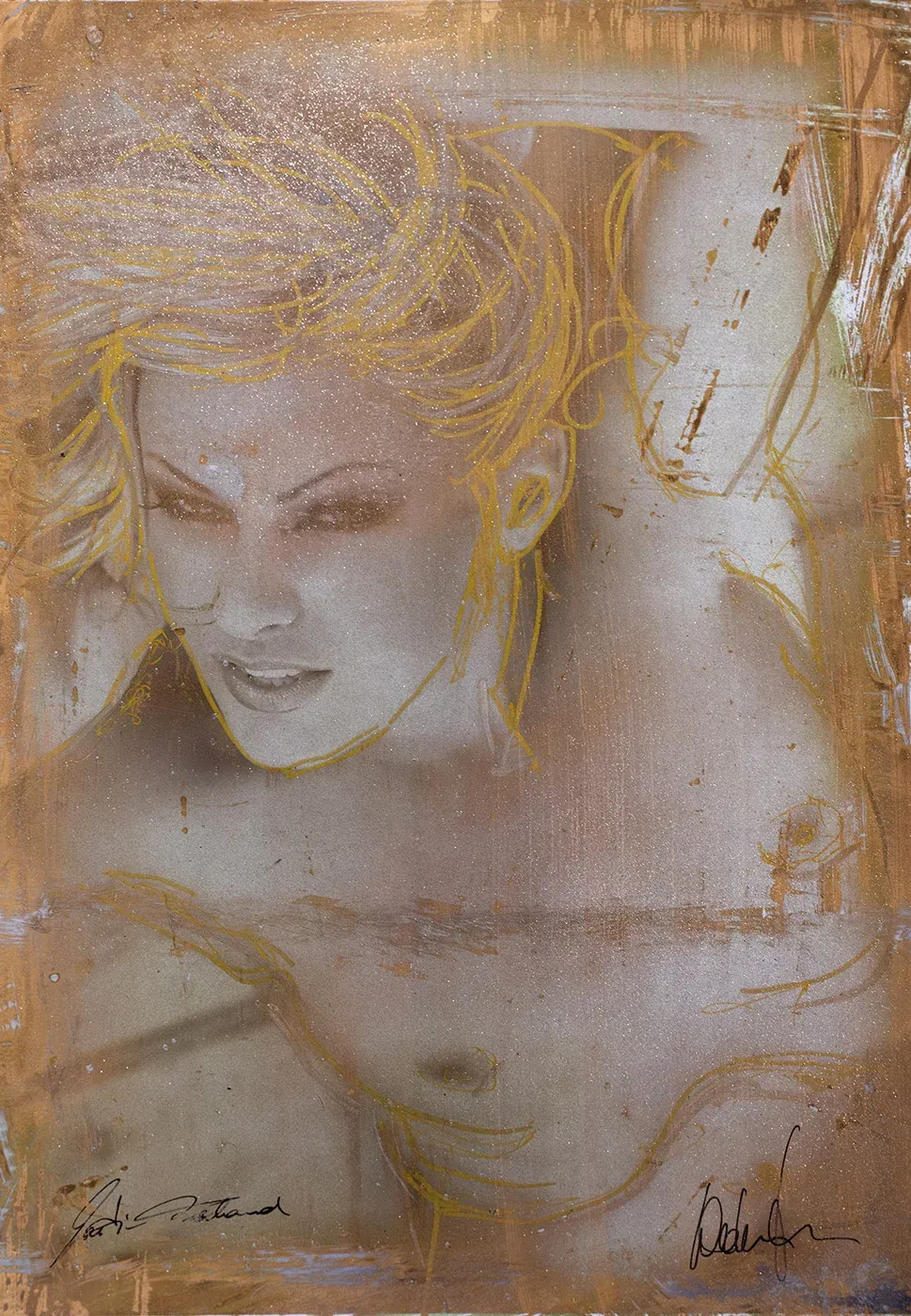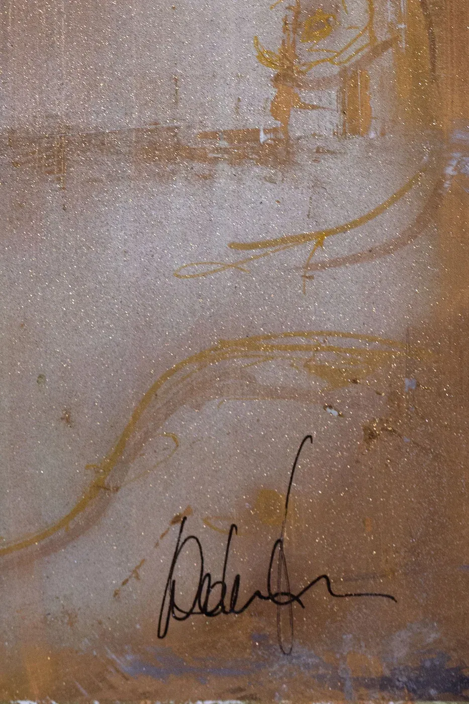 - Technique: Lacquer, gold spray, glitter, overpainting on photo paper
