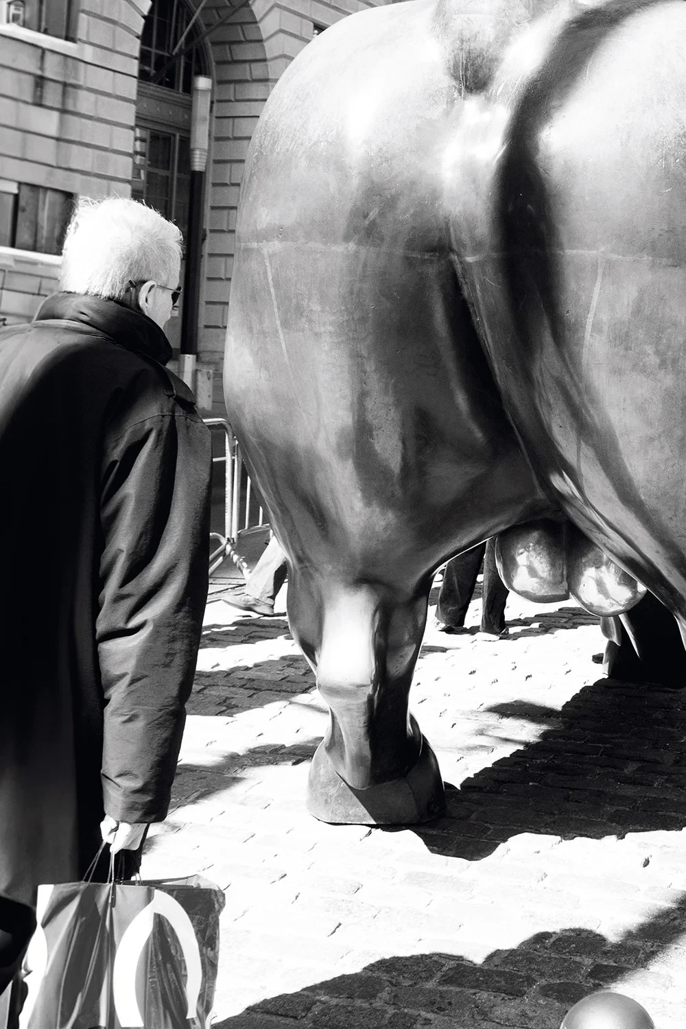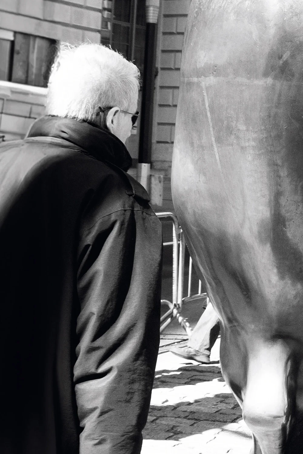 One bull, two eggs, a heap of capitalism. Wall Street has its own symbols, and this one shines more than all the others. Everyone wants to touch it – for luck, for money, for the feeling of being part of something big. Some rub it, some pose in front of it, others just look. And then there are those who stop and think. Streetphotography shows exactly that: the moment when a man asks himself whether this is all that matters – or whether it is just a shiny illusion, created to keep the dream of success alive.
