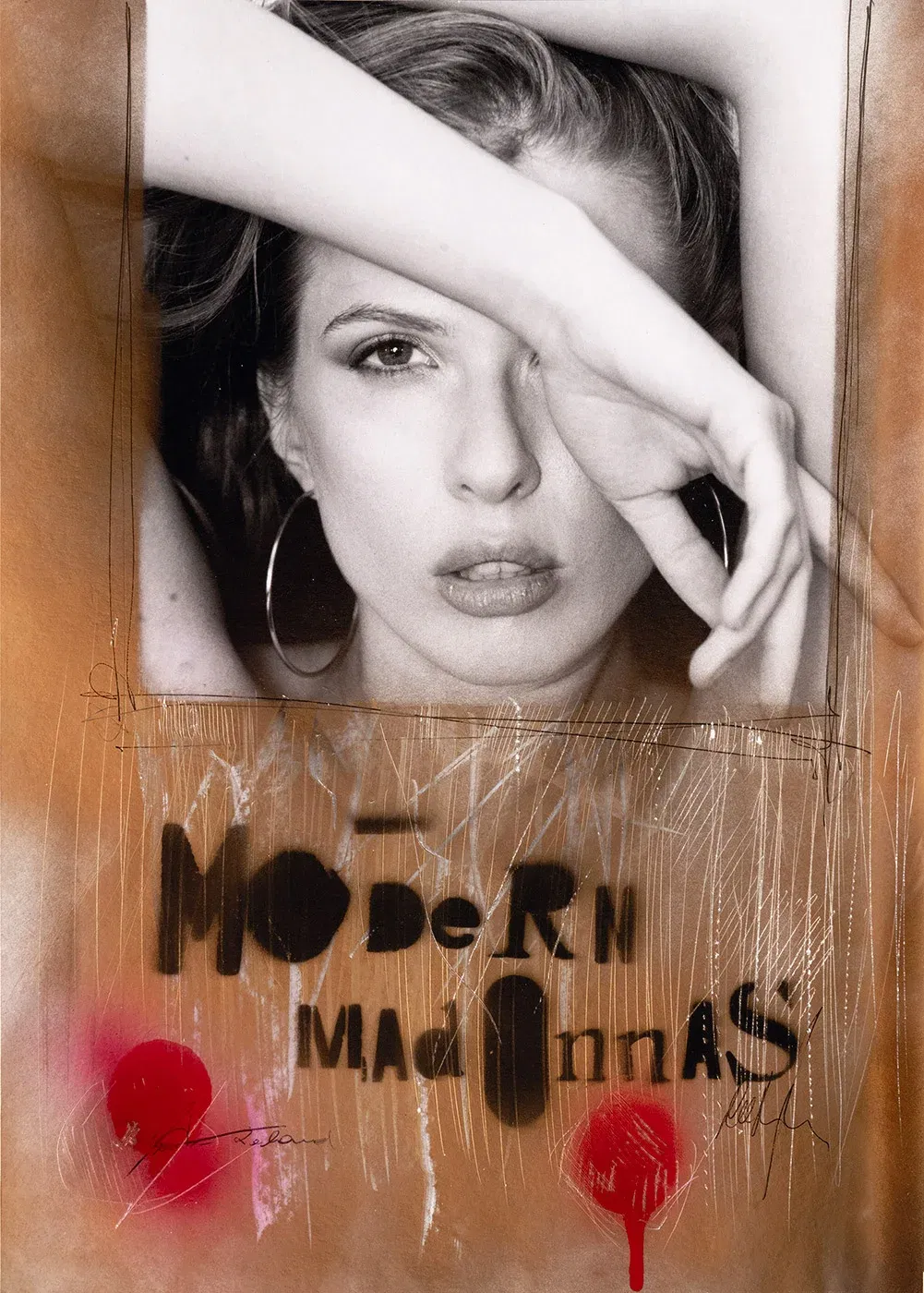 Each work in the Modern Madonnas series is a unique original – analog, genuine, tangible. There is no retouching here, it is layered, torn, applied. Layer by layer, different materials are applied, reworked, destroyed and rebuilt until the surface not only develops depth, but also its very own dynamic.