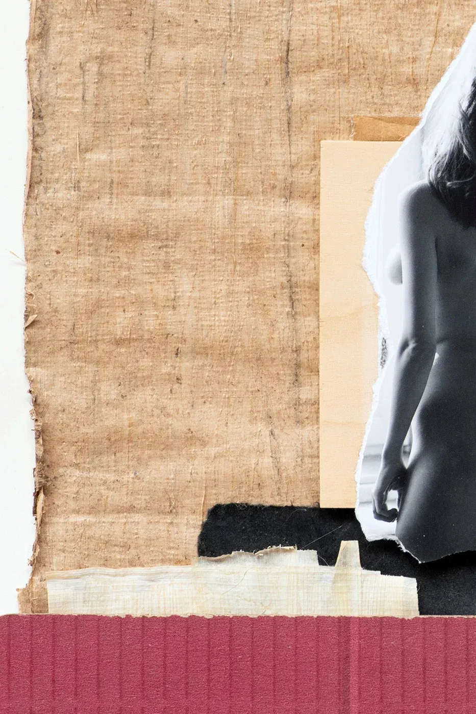 - Technique: printed photography, paper, adhesive tape, collage on cardboard