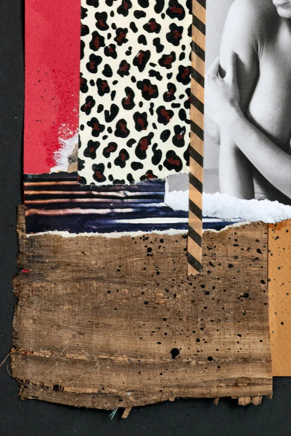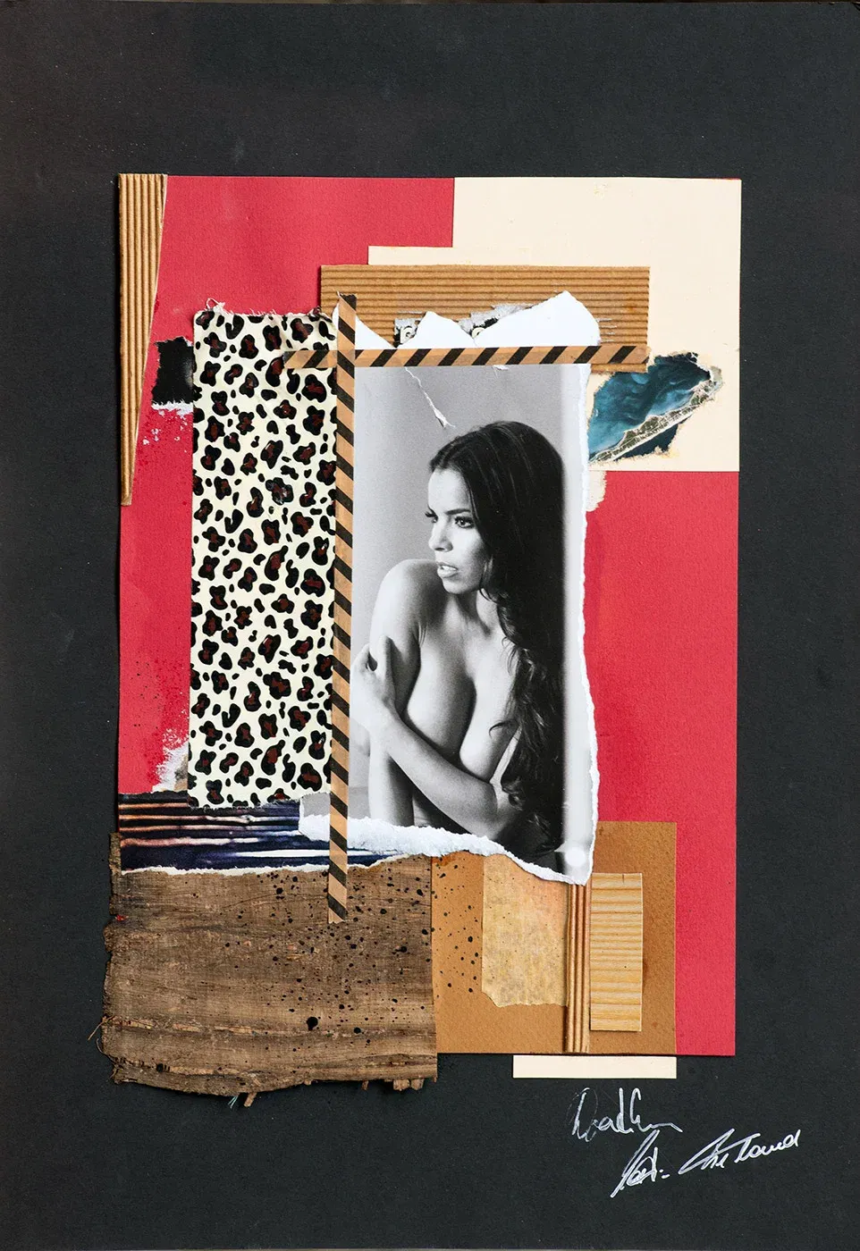 This contemporary collage art plays with desire and distance. The combination of wild patterns and naked skin creates an image full of tension.
