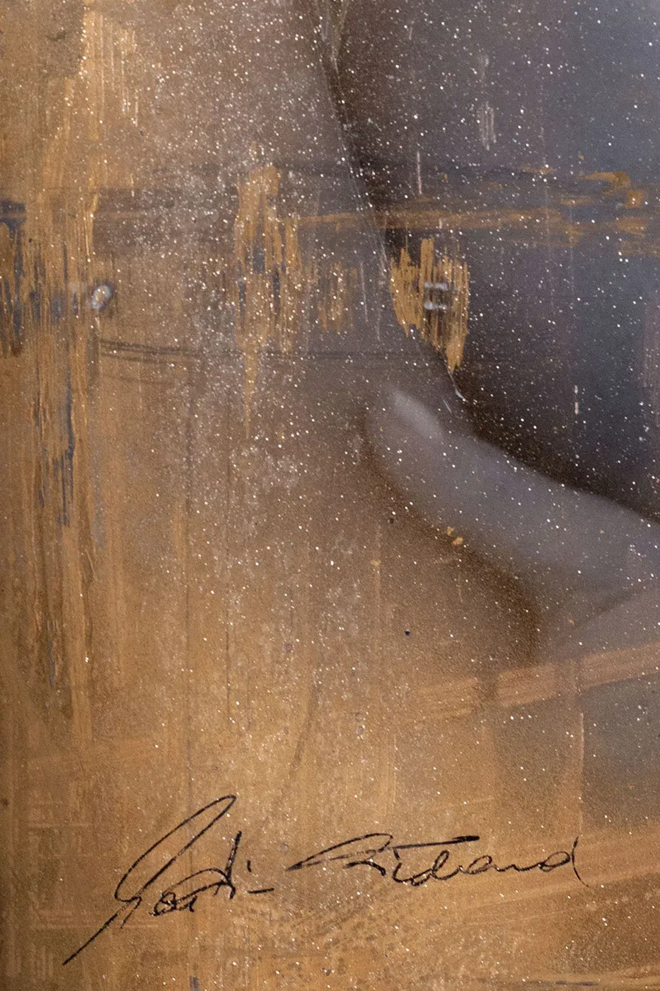 - Technique: Lacquer, gold paint, glitter, overpainting on photo paper