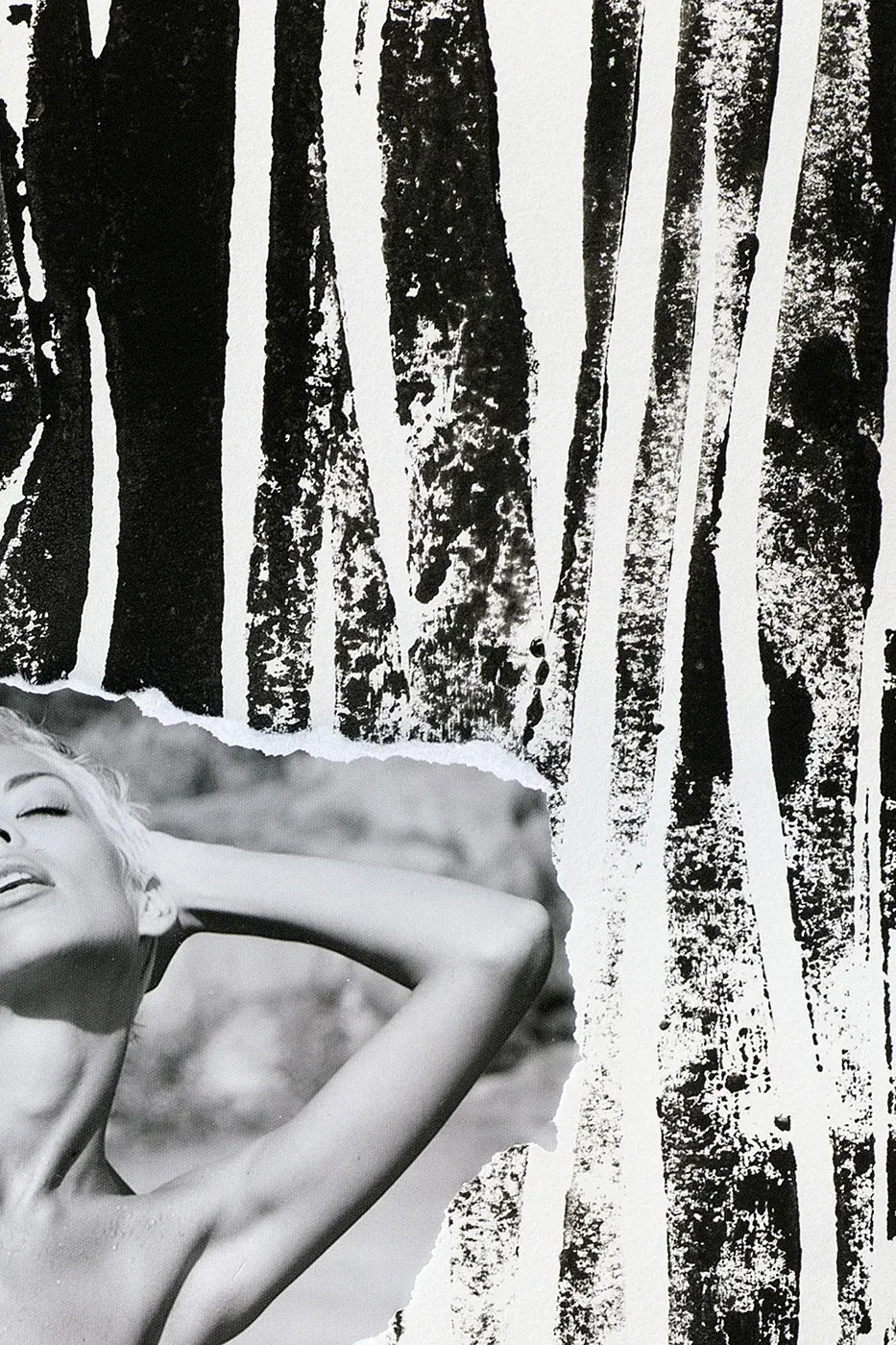 Sometimes it doesn’t take much: a body, bare skin and the sun that burns away any excuse. The ink runs like memories of nights that are better left untold. The pubic area remains unadorned – not vulgar, just there because it belongs there. Contemporary collage art that shows you how close lust and life are.