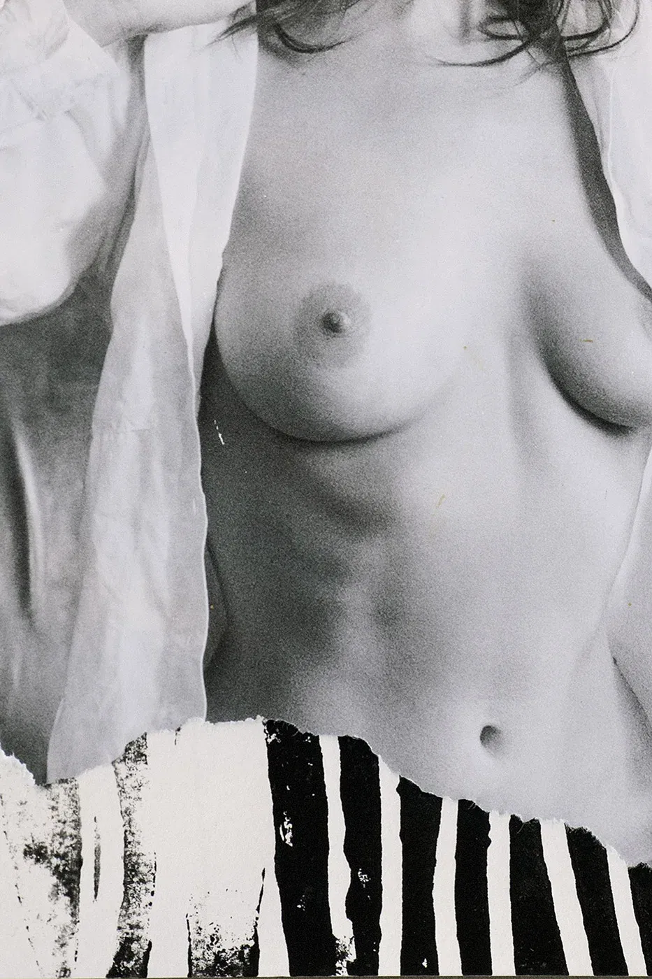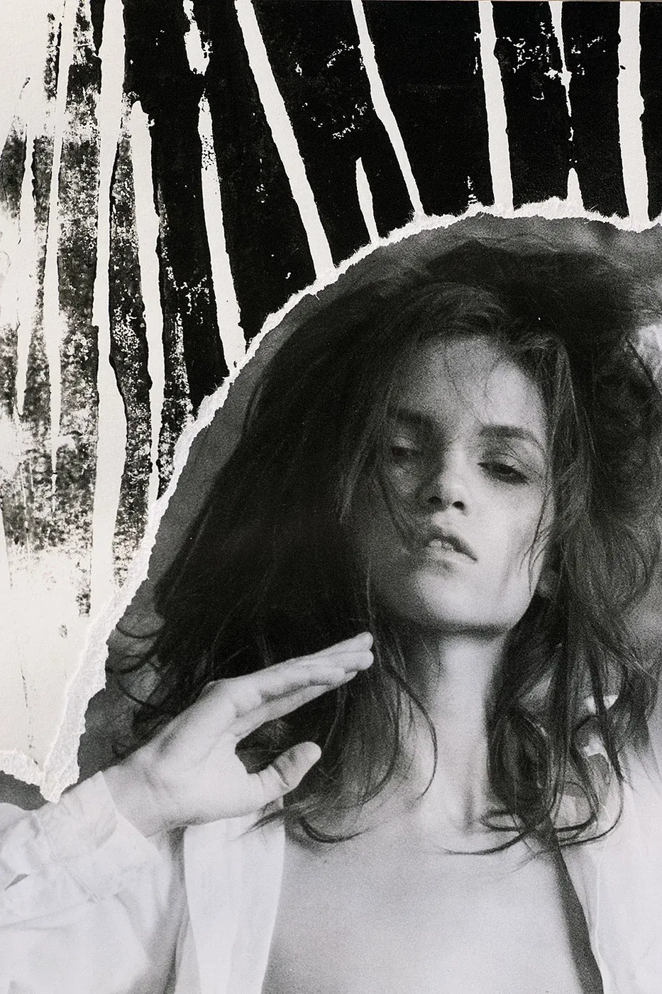 When black and white dance, the gray remains. This woman has said goodbye to it. She leans in the chaos, half awake, half wild, and knows: the night is not over yet. Contemporary collage art in which no stroke is accidental. Just like life when you let it go.