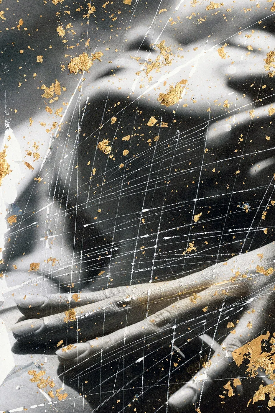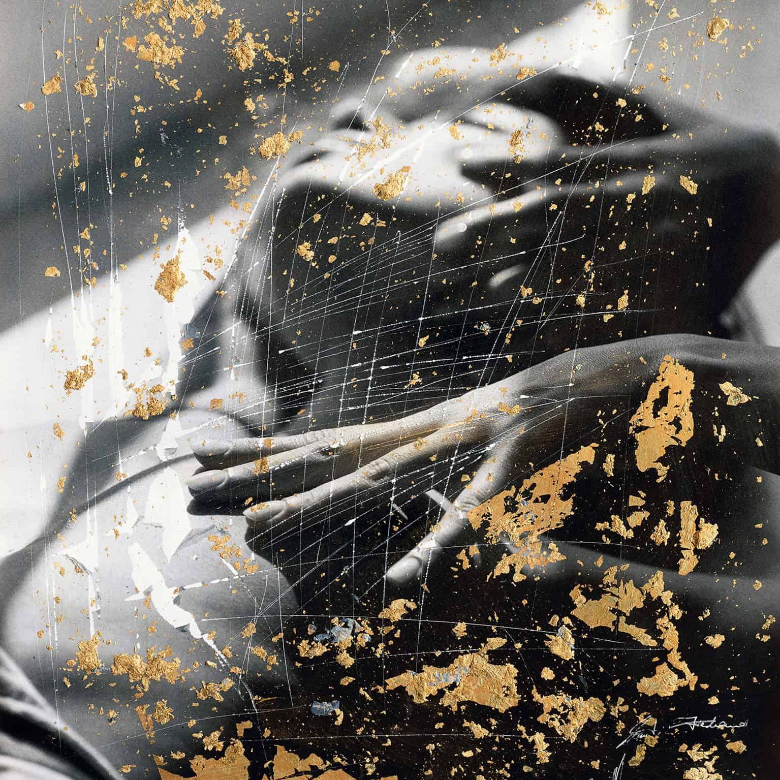 Contemporary collage art with gold leaf, lacquer pencil and original photography on Hahnemühle FineArt Baryta. Hand-signed and unique.