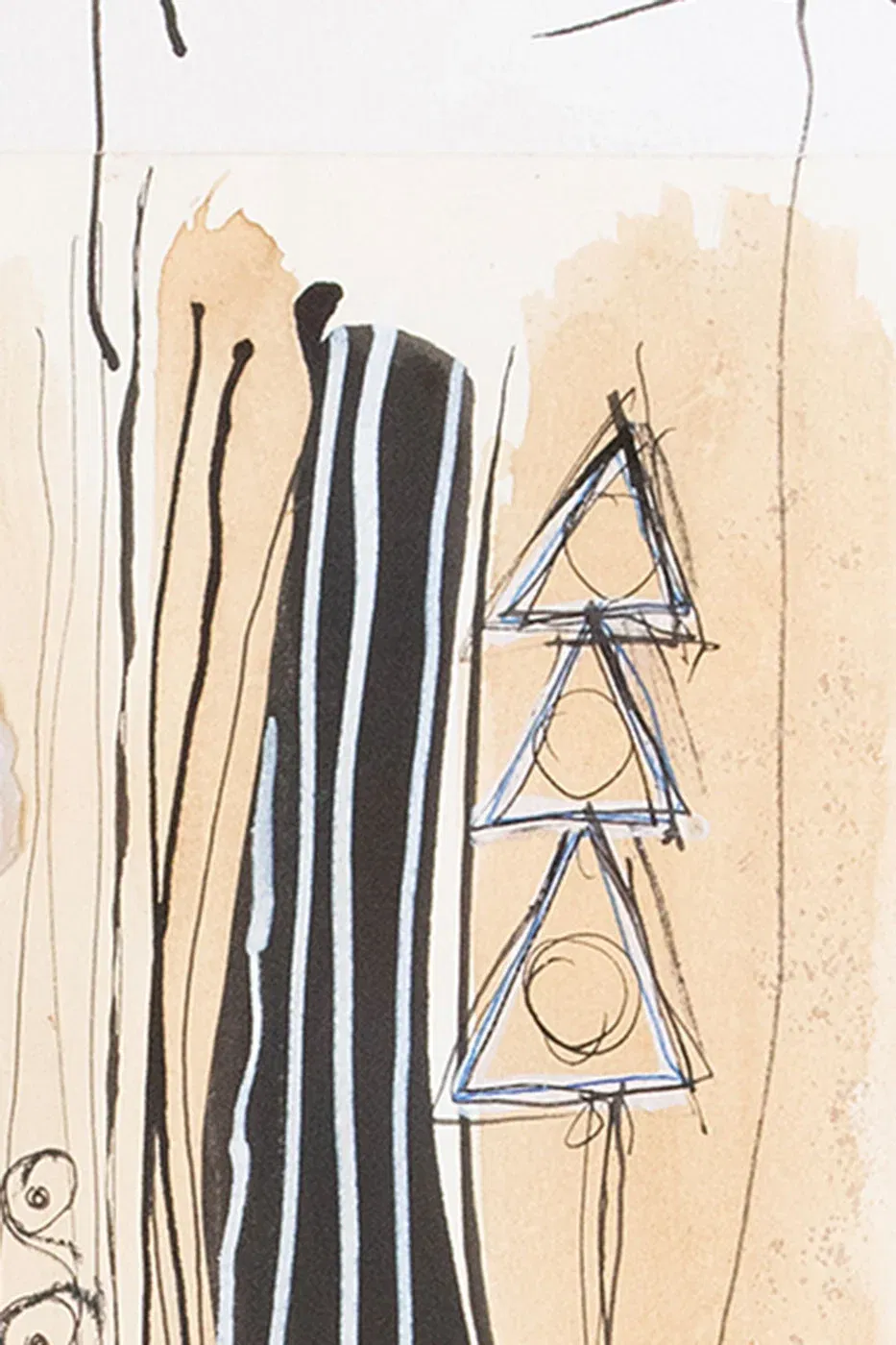 Contemporary collage art with ink, coffee, oil pastel and opaque white on paper. Hand-signed, certified and available as a unique piece.