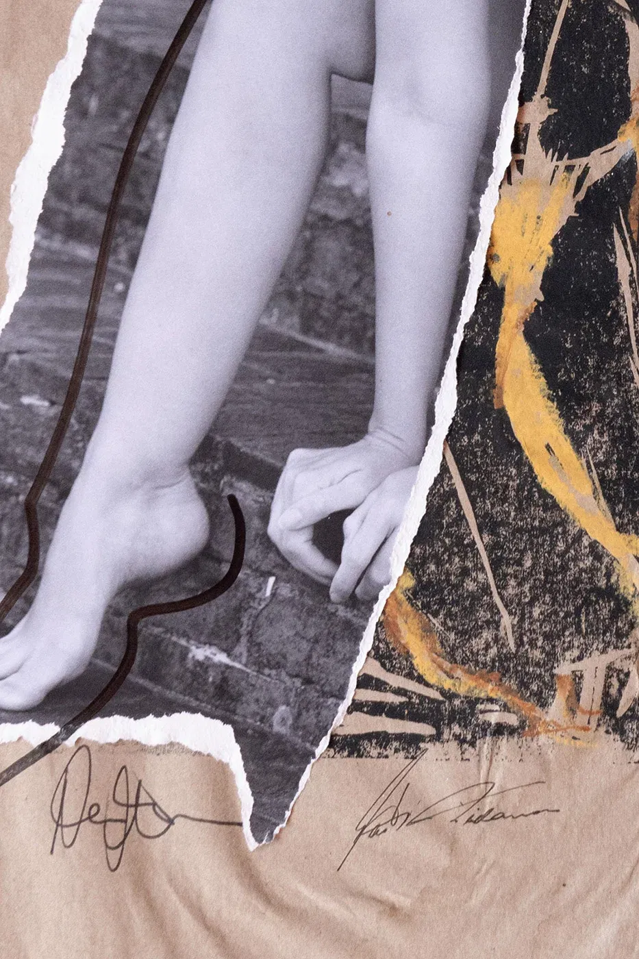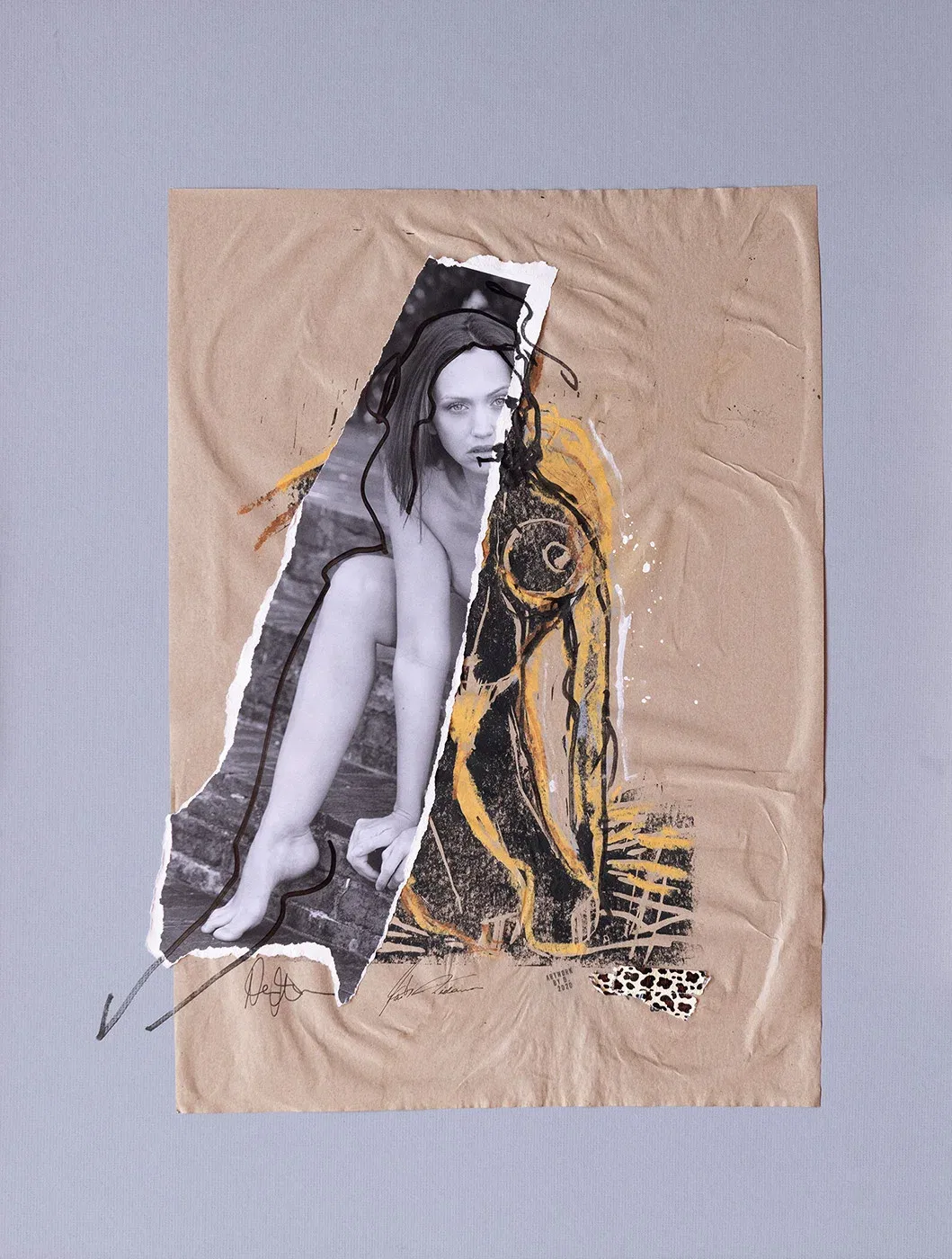 Unique collage with touch-up pencil, oil pastel and original photograph. Contemporary collage art on 61 x 81 cm cardboard