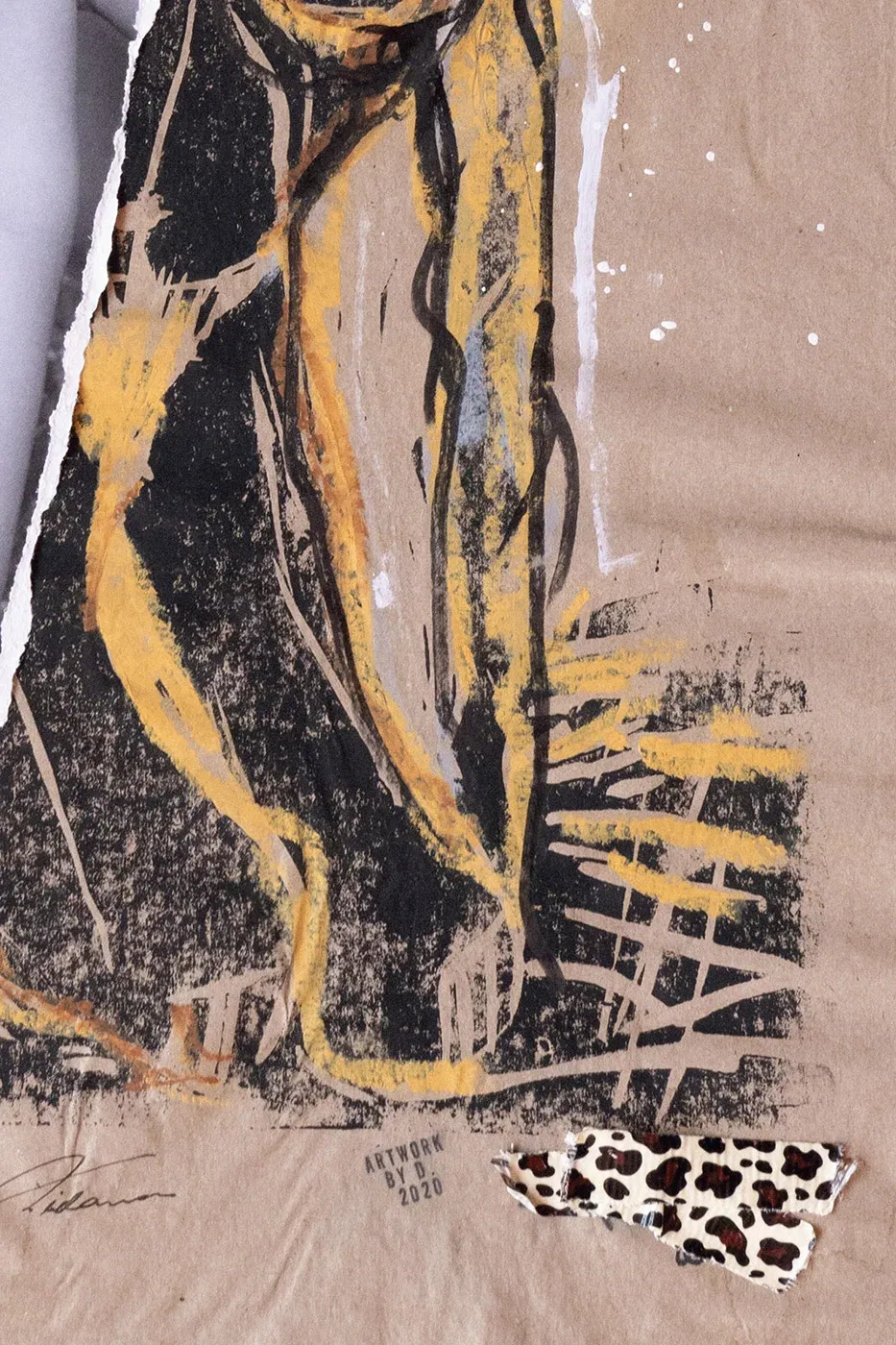 - Technique: touch-up pencil, oil crayon, adhesive tape, original photograph, collage on cardboard