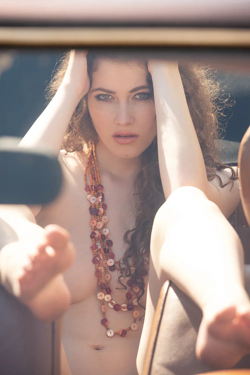 “Ticket to Ride” feels like a movie where you never know whether you’ll end up in it or not. The heat of the day, the leather of the seats, her gaze that captivates you on the one hand and makes you forget who’s in charge on the other. Erotic nude photography with a hell of a lot of suspense.