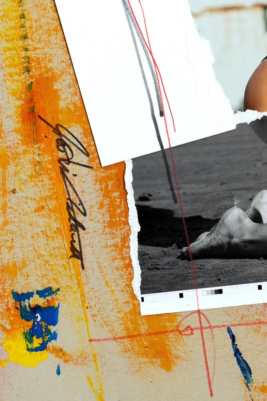 - Technique: ink, acrylic, spray paint, printed photograph, collage on cardboard