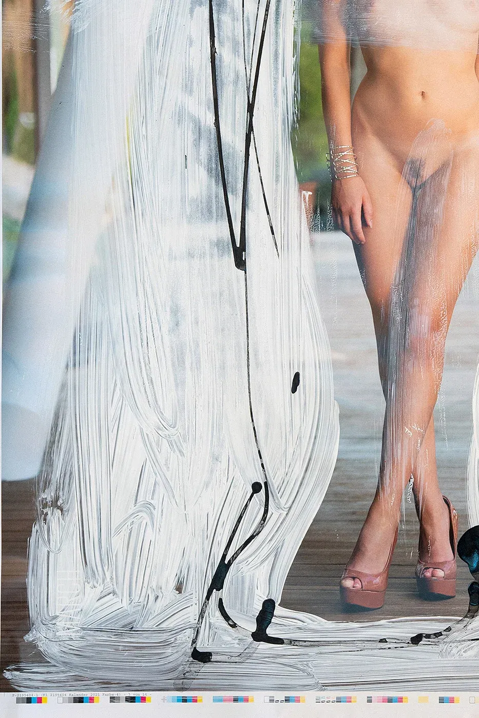 She doesn’t look at you, but you feel caught out. Eroticism pushes out of every pore, pulling at your gaze until you have to surrender. Contemporary collage art that doesn’t deliver friendly aesthetics here, but raw attraction. The opaque white? No censorship, just traces of a repressed morality that has no place here. You can feel it: it is coming towards you. The step is quiet, but the effect is brutal. You remain trapped, as if her gaze were a predator and you only prey.