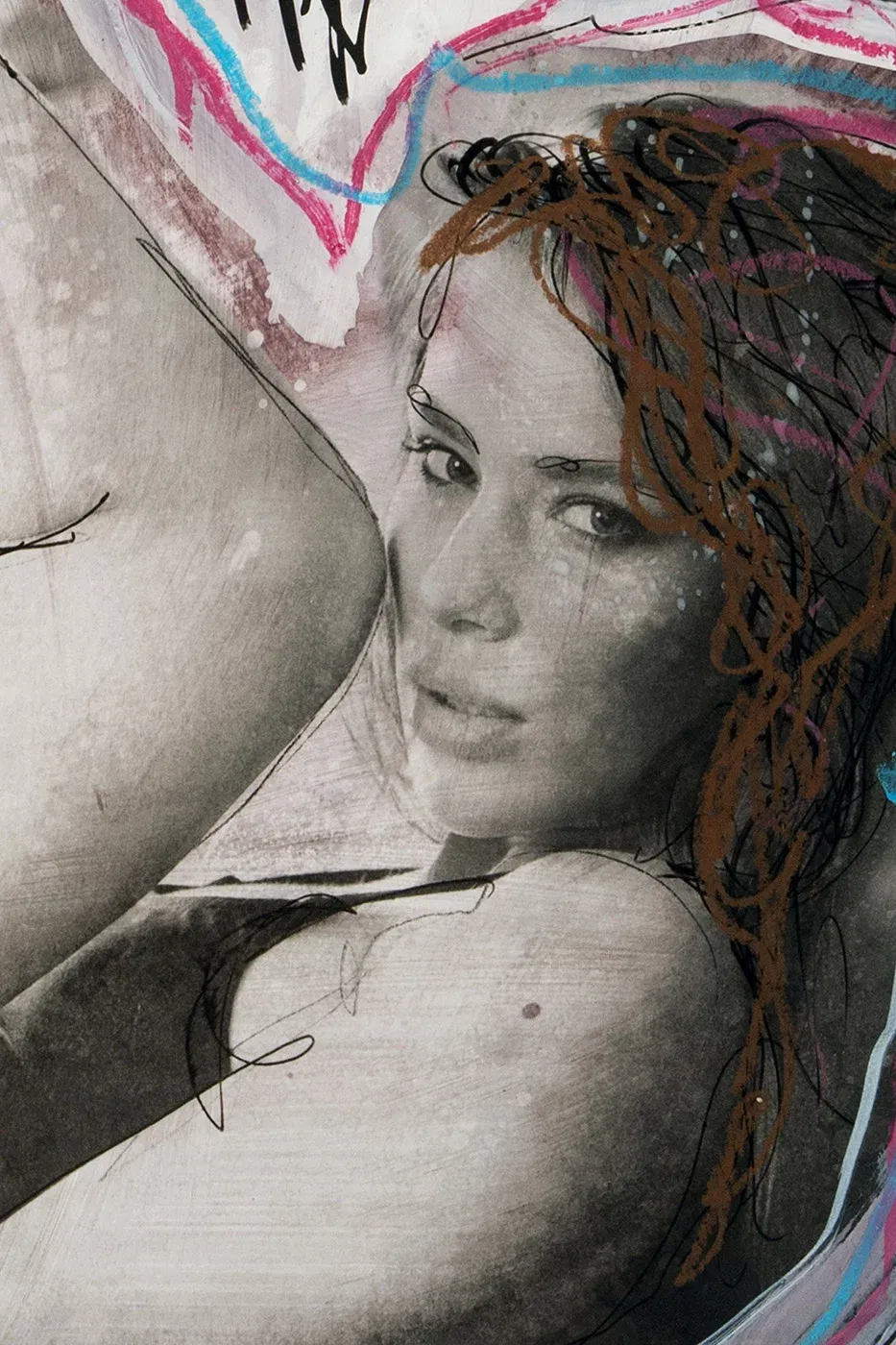 Each work in the Modern Madonnas series is a unique original – analog, genuine, tangible. There is no retouching here, it is layered, torn, applied. Layer by layer, different materials are applied, reworked, destroyed and rebuilt until the surface not only develops depth, but also its very own dynamic.