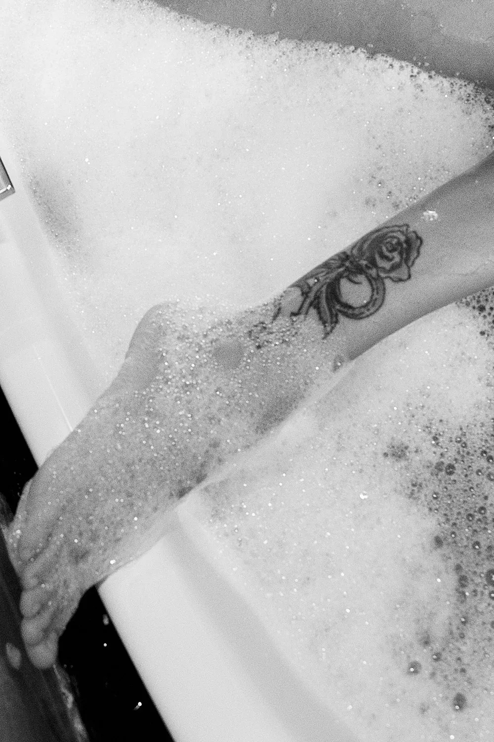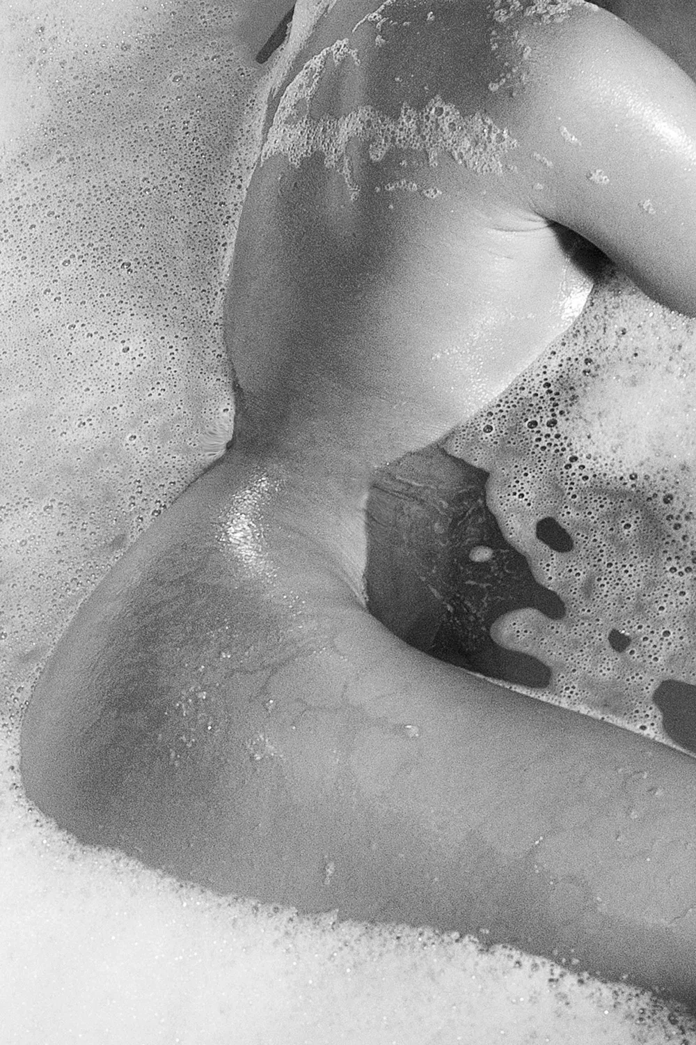 Erotische Aktfotografie in ihrer coolsten Form – diese Aufnahme verbindet die entspannte Atmosphäre eines luxuriösen Bades mit einer aufregend verführerischen Silhouette. Die Frau liegt lässig in der Badewanne, umgeben von Seifenblasen, die die Szene mit einer unerwarteten Leichtigkeit füllen. Ihr Blick ist tief und selbstbewusst, während sie scheinbar ganz in ihrem Moment aufgeht. Diese Mischung aus sinnlicher Ruhe und spannungsgeladener Erotik wird durch das Spiel von Licht und Schatten noch verstärkt. Es ist eine moderne Interpretation der Aktfotografie, die das Alltägliche in einem neuen, künstlerischen Licht zeigt. Ganz im Sinne der modernen Erotik ist dieser Moment unaufdringlich und gleichzeitig ein Highlight für die Sinne.