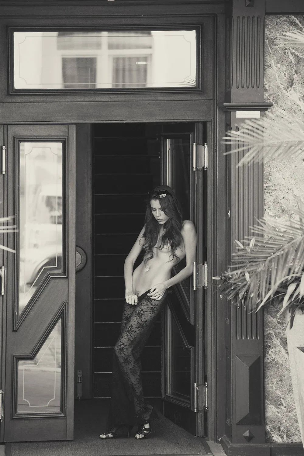 Schwarze Spitze, nackte Haut, ein offener Eingang und eine geschlossene Welt. Entrance ist erotische Aktfotografie mit einer Geschichte.