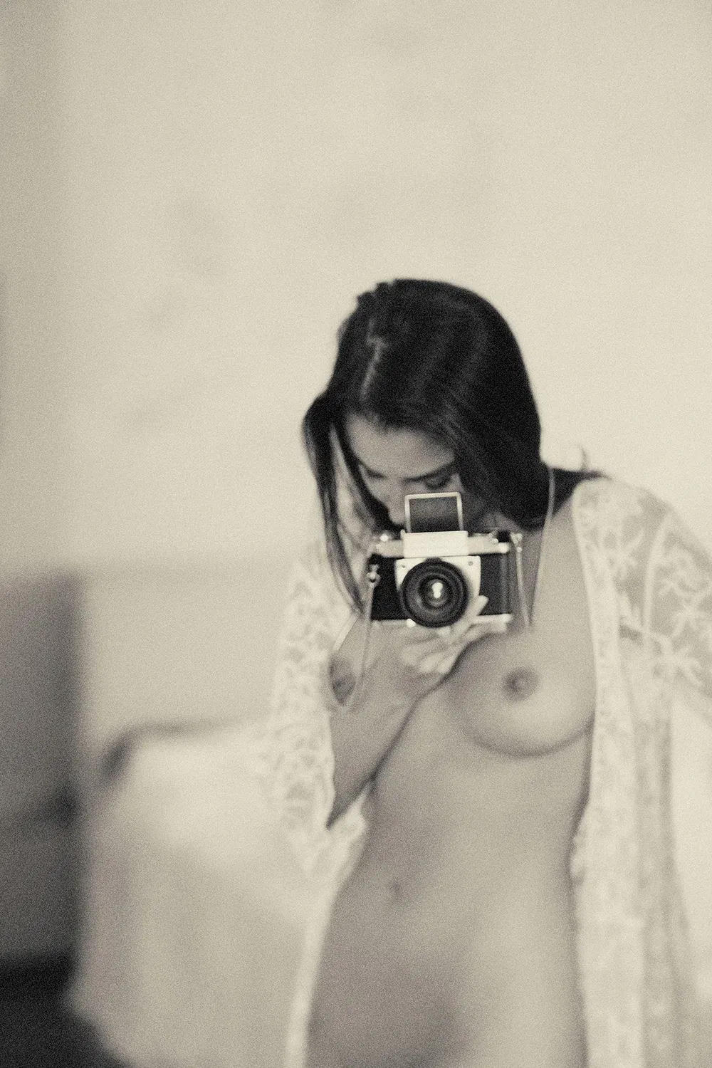 Ein Moment eingefangen durch die Linse. Erotische Fotografie, die den Blick in die Seele und das Spiel mit Intimität zeigt.