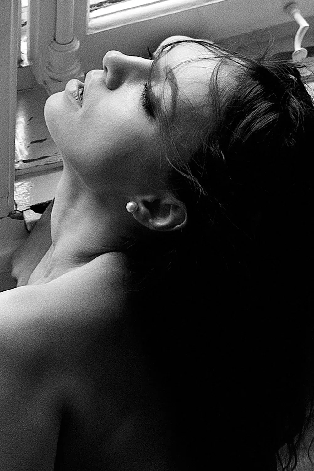 Erotische Fotografie in ihrer reinsten Form – hier entfaltet sich ein Moment der absoluten Ruhe und Intimität. In diesem Bild steht die Frau völlig im Einklang mit sich selbst, während sie in dieser fast schon meditativen Pose vor einem Fenster sitzt. Das Licht bricht sanft durch die Fenster und wirft eine fast märchenhafte Atmosphäre auf die Szene. Die einfache Eleganz des Moments wird durch ihre Haltung und den minimalistischen Raum unterstrichen. Ihre nackte Haut und die weiche, natürliche Lichtführung sprechen für sich – es braucht keine Worte, um diese tiefe, persönliche Verbindung zur eigenen Körperlichkeit zu verstehen. Diese Aufnahme verbindet sinnliche Erotik mit einer fast philosophischen Ruhe, was sie zu einem einzigartigen Kunstwerk macht.