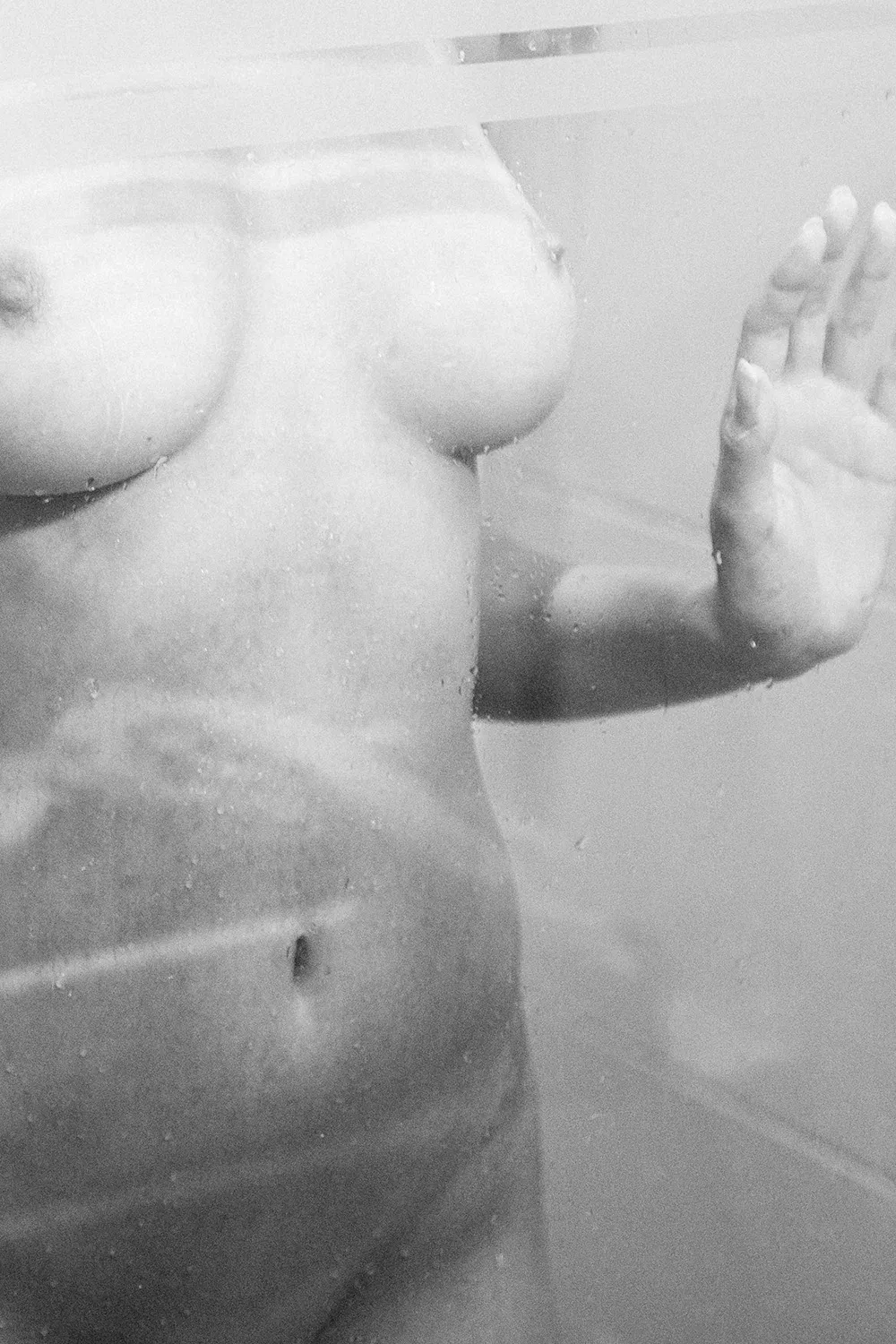 Wasser rinnt über Haut, Dampf legt sich darüber wie ein schlechtes Alibi. Man sieht genug, um neugierig zu werden. Nicht genug, um sicher zu sein.
