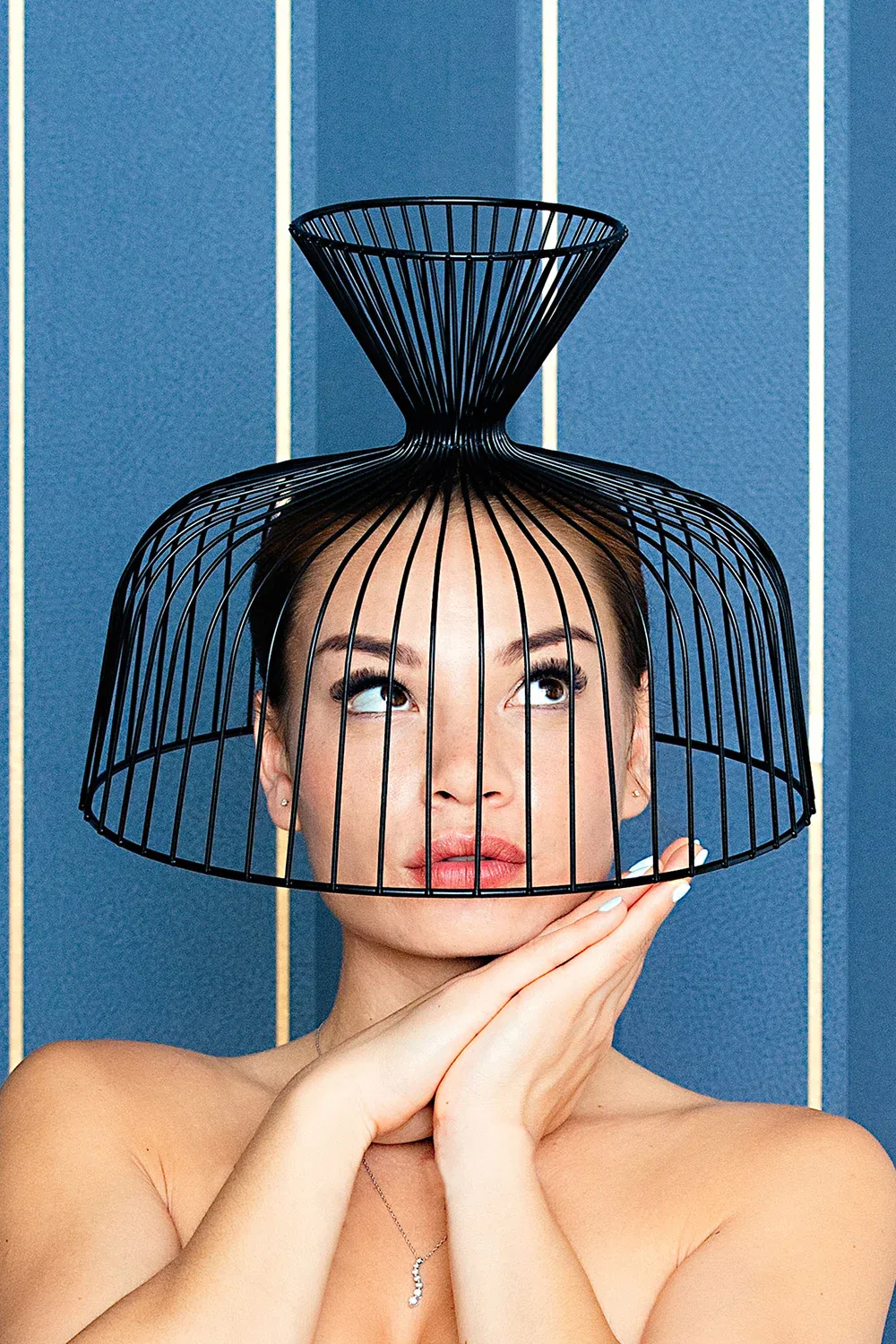 Der Kopf steckt im Drahtkorb, der Körper nicht.