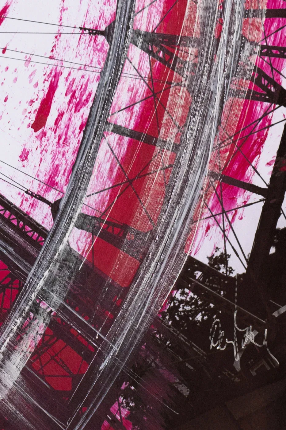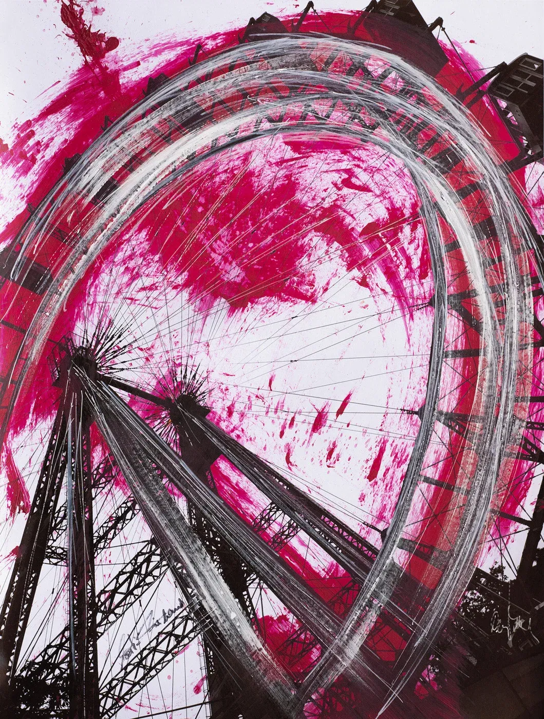 Moderne Collagenkunst mit Wiener Prater-Riesenrad, Acryl und Lackstift. Unikat im Format 60 x 80 cm.