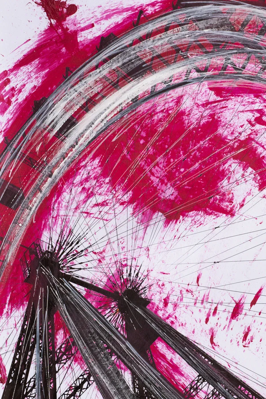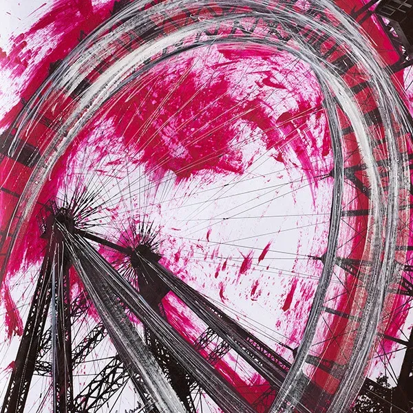 Das Riesenrad im Prater – ein Monument der endlosen Bewegung. Immer im Kreis, immer weiter. Moderne Collagenkunst, die genau das zeigt: Dynamik ohne Stillstand. Der pinke Farbwirbel wirkt wie der Puls der Stadt, der das Rad antreibt, während die Gondeln scheinbar schwerelos schweben. Die Struktur bleibt stabil, das Gefühl bleibt lebendig. Die Welt dreht sich, und du drehst dich mit.