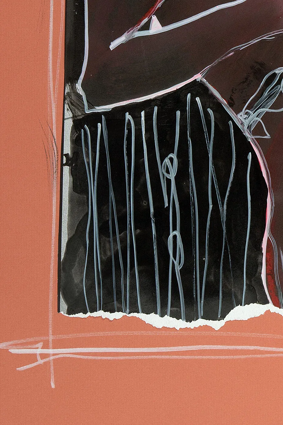 Zeitgenössische Collagenkunst mit Tusche, Aquarell und Lackstift auf Karton. 42 x 58 cm. Ein signiertes Unikat.