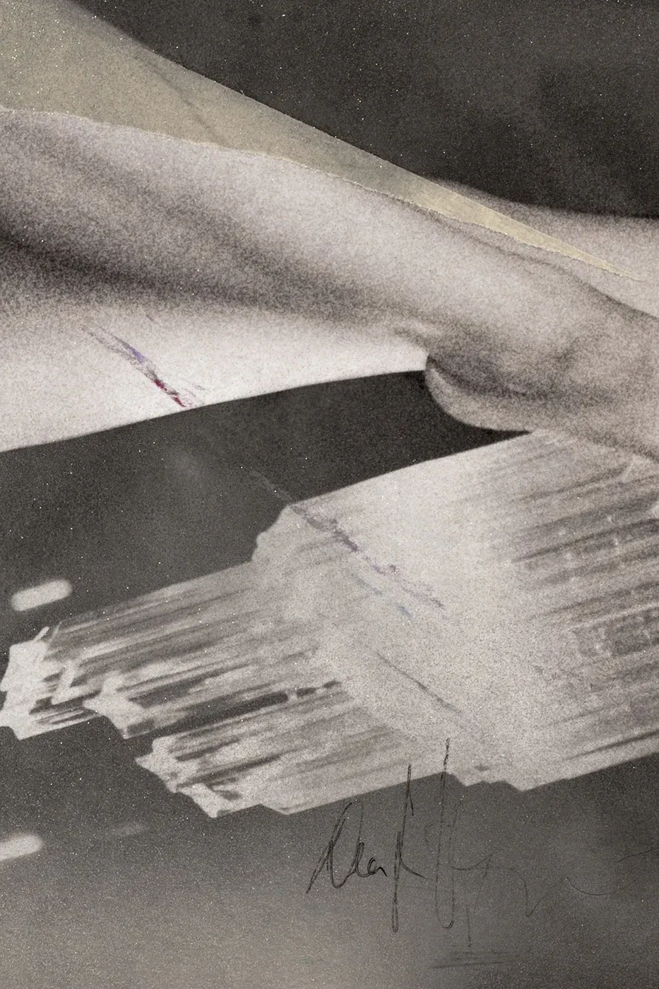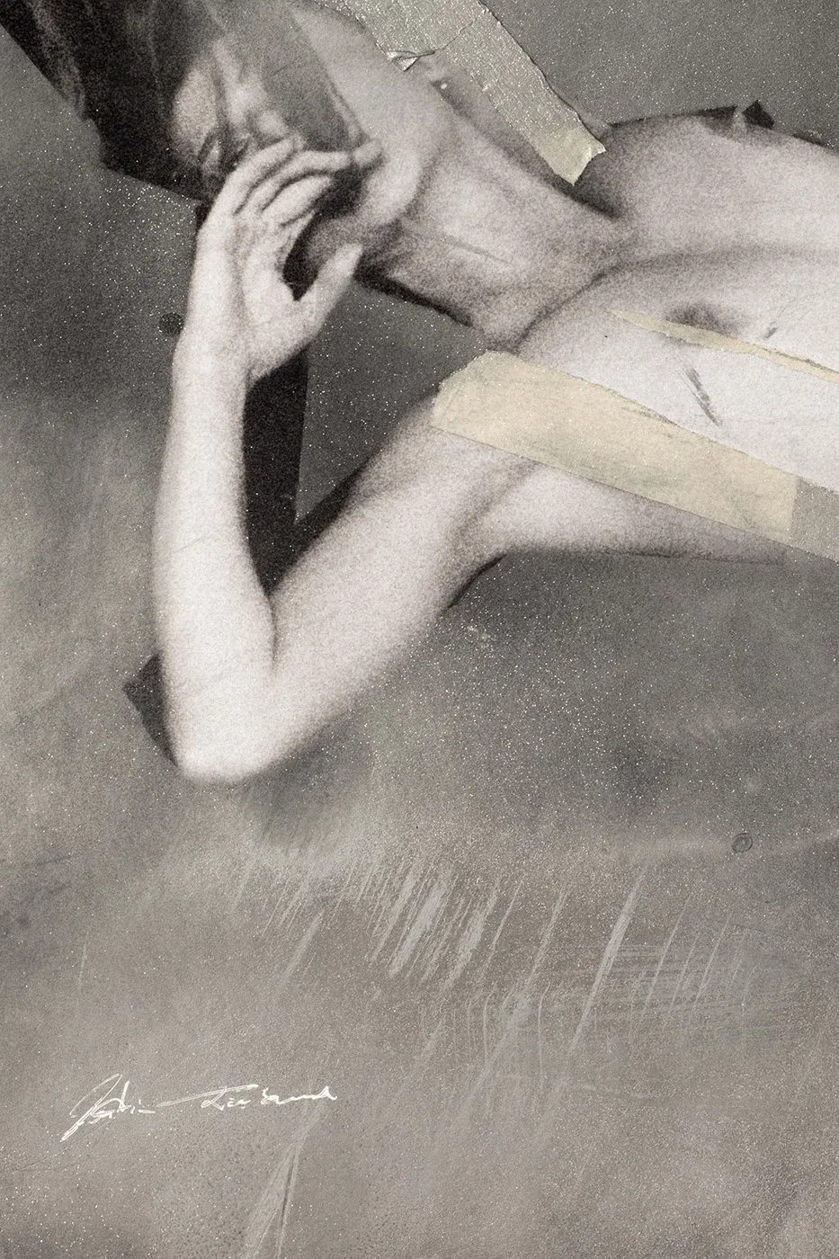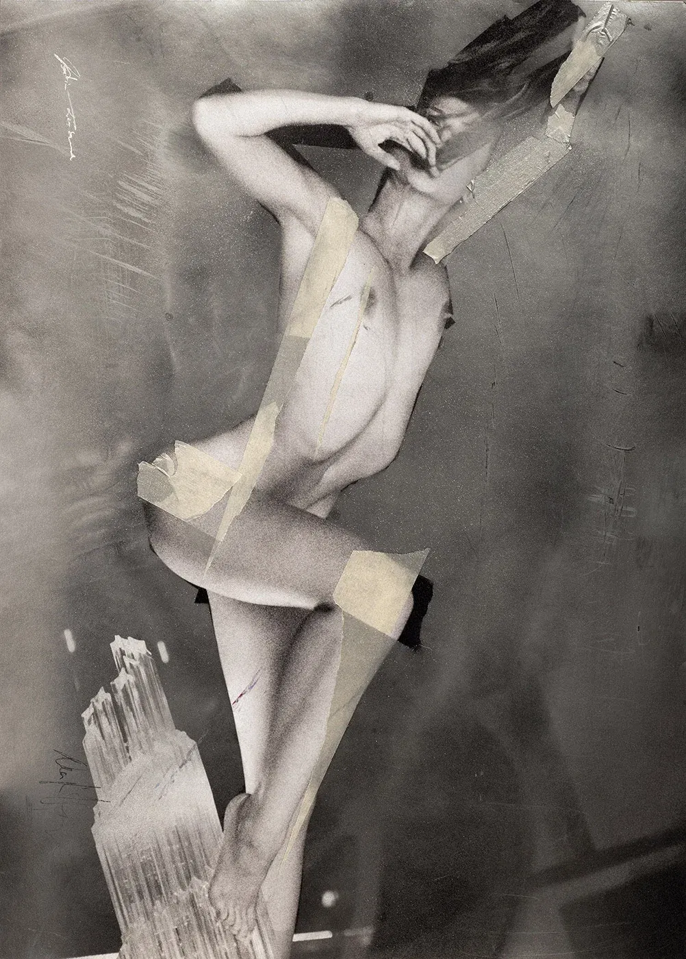 Die Haut spielt mit dem Licht, die Linien verlaufen wie heiße Atemzüge über kaltem Glas. Das Tape klebt, aber hält nichts zurück. Zeitgenössische Collagenkunst, die dem Vergänglichen trotzt. Der Körper biegt sich, reckt sich, bietet sich an – und bleibt doch unangreifbar. Diese Arbeit ist nicht für Sammler von netten Geschichten. Sie ist für jene, die Kunst als Kampfzone begreifen. Wer Lust und Wahrheit sucht, wird hier fündig.